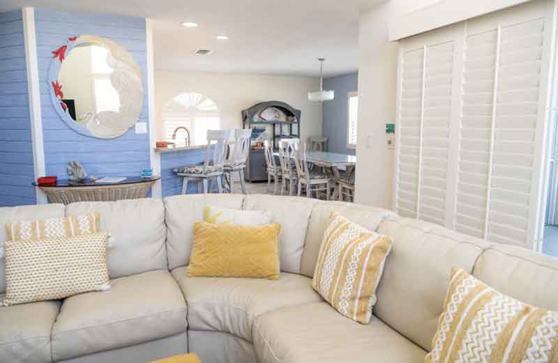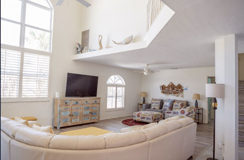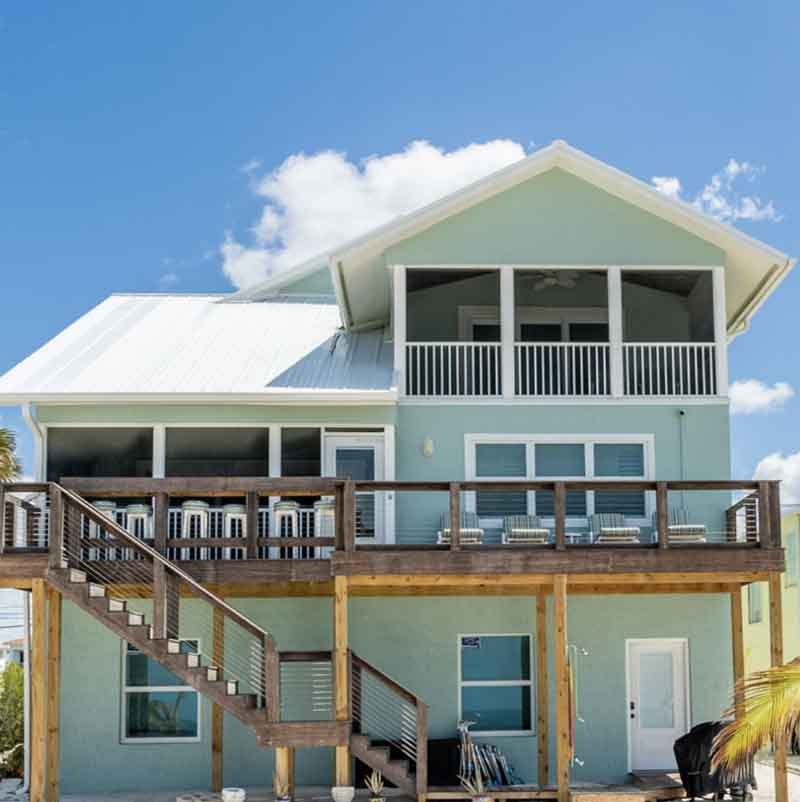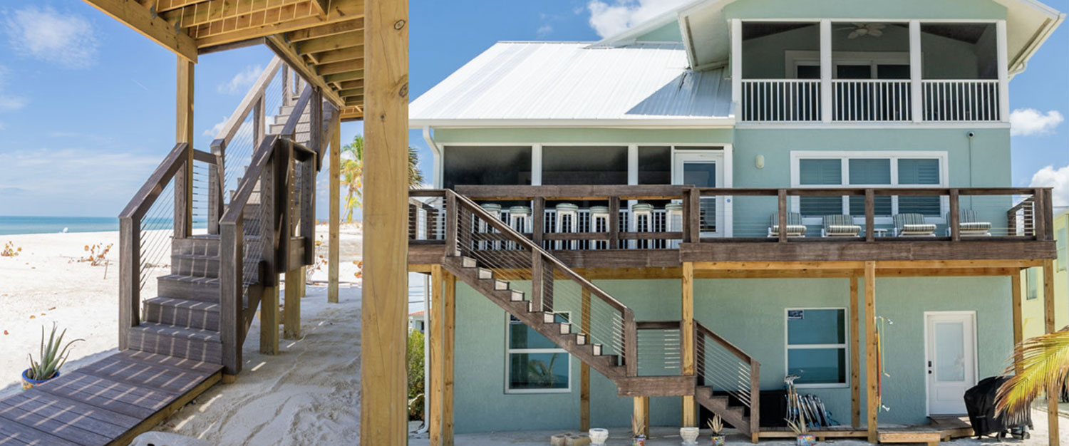 Private Beach home directly in the sand on the Gulf of Mexico on Bonita Beach, Florida. 6 bedrooms 4 1/2 baths, large recreation room off beach, multiple views of the Gulf of Mexico. 2 open balconies and 1 covered balcony all overlooking the beach. First floor large recreational room. Lounge chairs and umbrellas for your beach stay. Gas grill, rafts, beach toys, etc. Newly decorated with a beachy feel and new kitchen with granite counter tops. Separate dining area and kitchen table and kitchen counter with high chairs with great views! Living room area with a 2 story high ceiling sleeps up to 14 people comfortably. Baby amenities upon request.